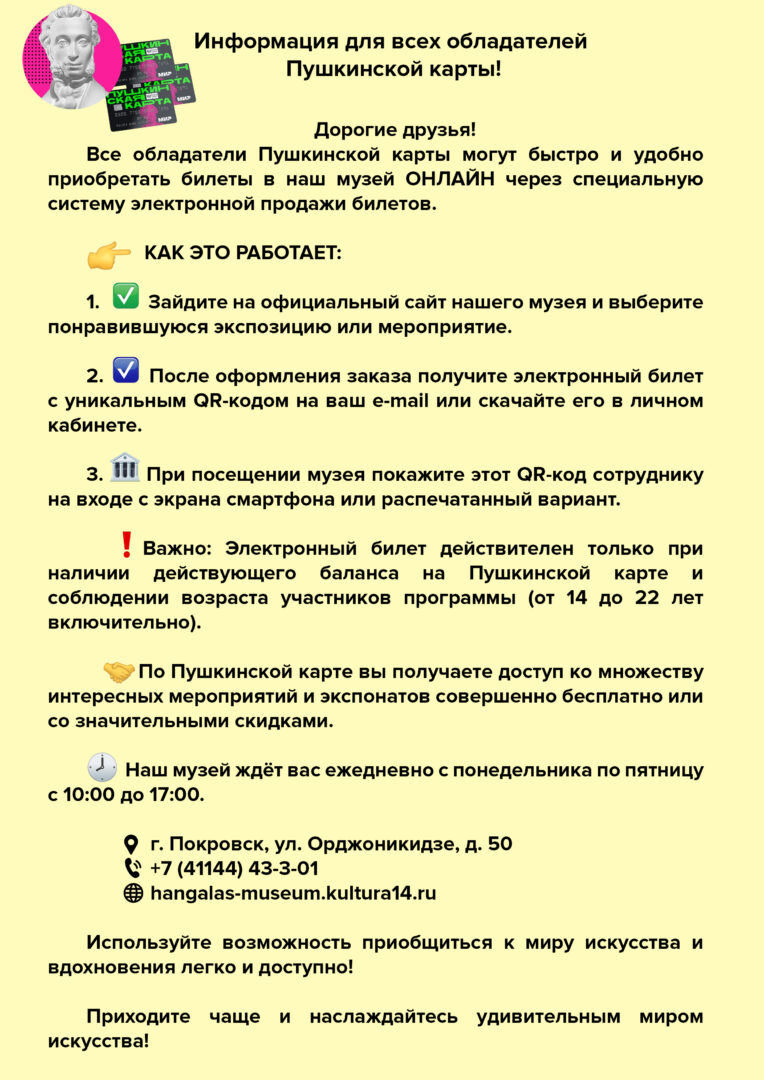 Информация для всех обладателей Пушкинской карты!