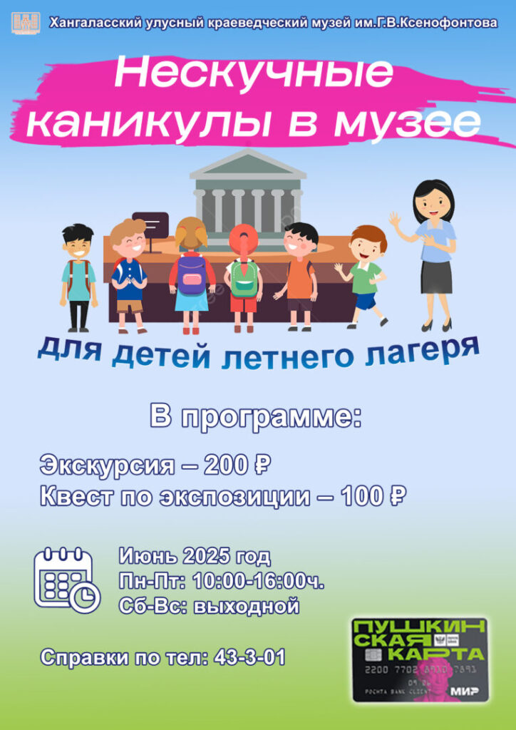 Хангаласский улусный краеведческий музей им. Г. В. Ксенофонтова приглашает детей летних лагерей на программу «Нескучные каникулы в музее»