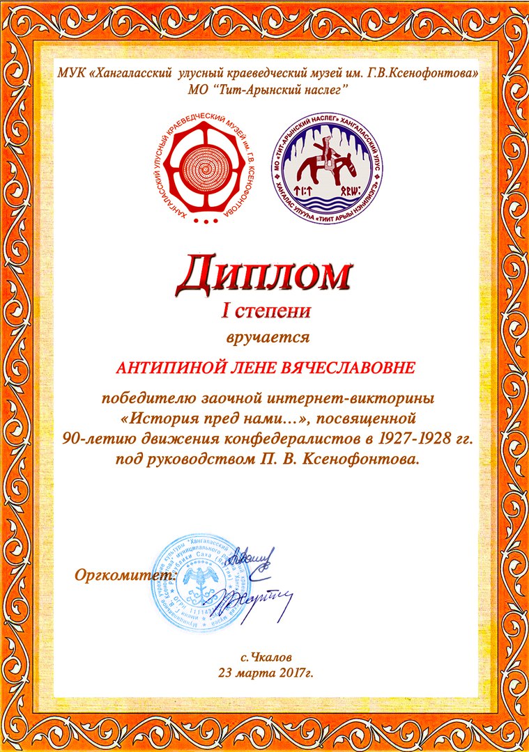 Победители заочной интернет-викторины «История пред нами…», посвященной 90-летию движения конфедералистов в 1927-1928 гг. под руководством П. В. Ксенофонтова.