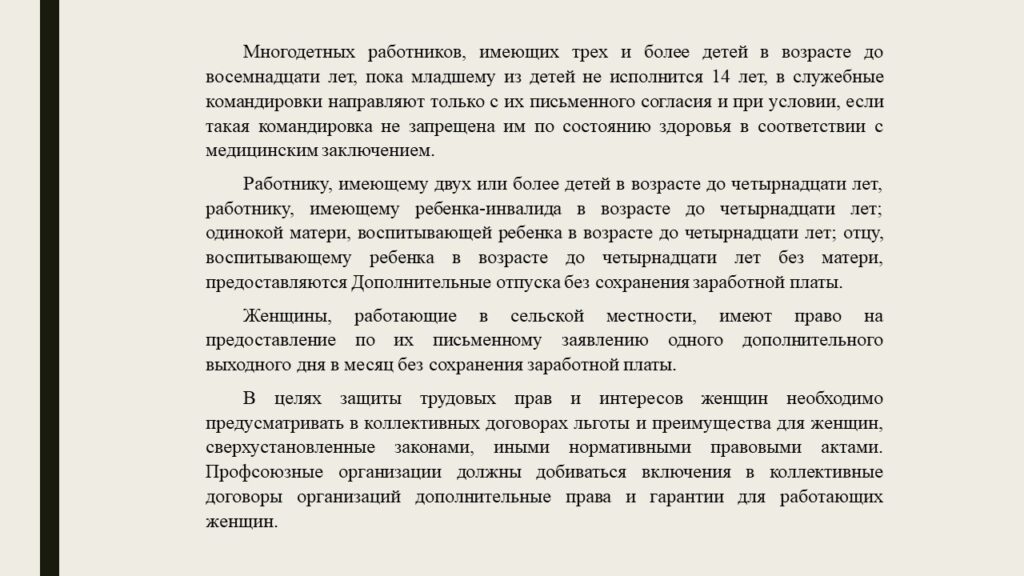 В преддверии праздника дня матери в РФ, публикуем некоторые вырезки из лекции председателя рескома профсоюза работников культуры Самсоновой А. И. о льготах и гарантиях женщин с семейными обязанностями.